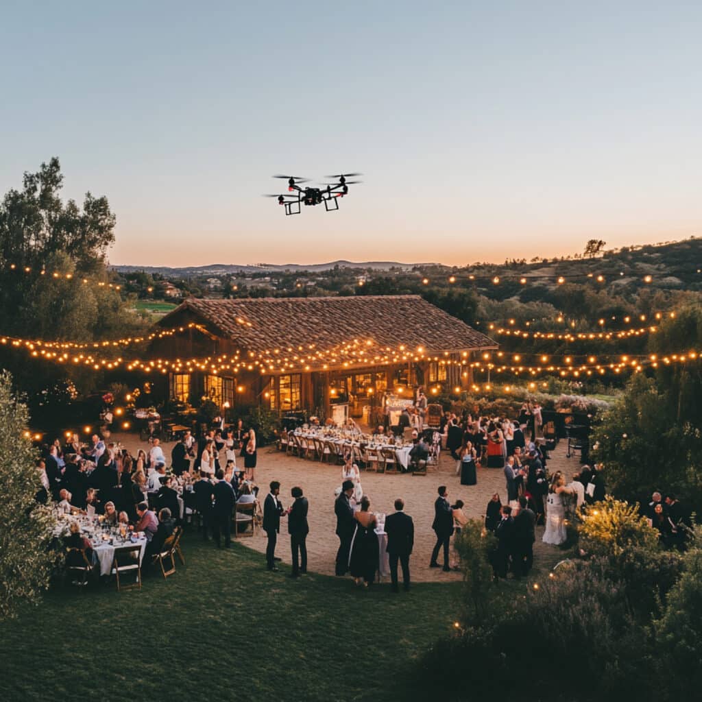 Capture wide-angle aerial visuals that highlight the full layout, design, and energy of your event space.